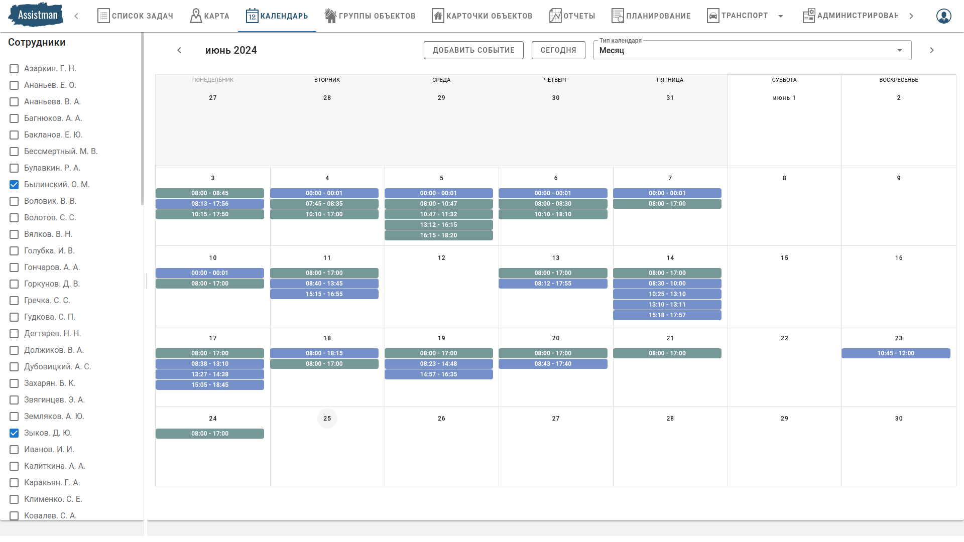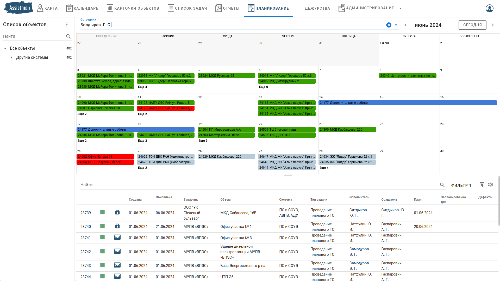 - Управлять занятостью каждого сотрудника, расставляя приоритетность